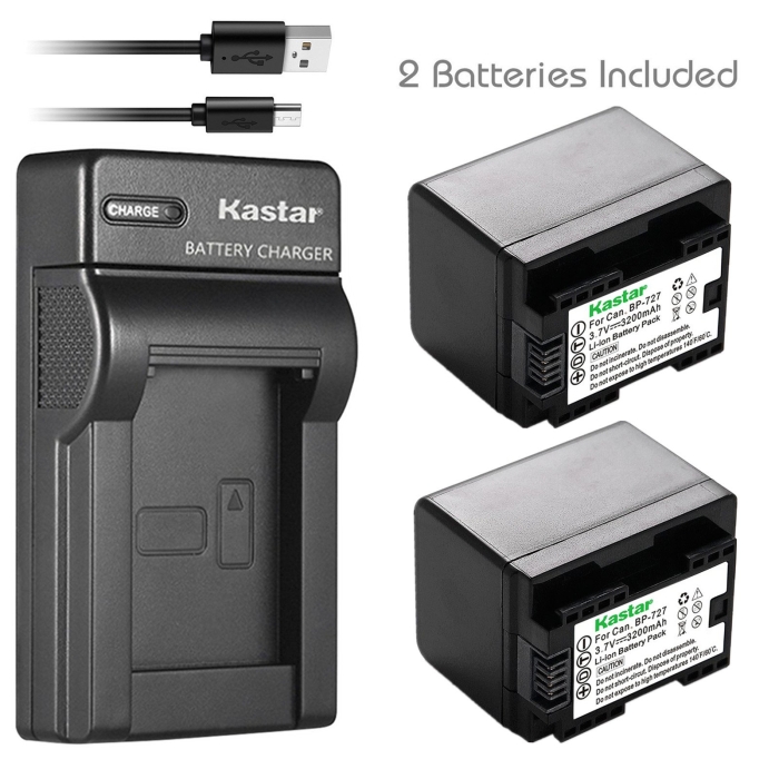 Kastar X2 Fully Decoded Battery + Slim USB Charger for Canon BP-727 & VIXIA HF M50, HF M52, HF M500, HF R30, HF R32, HF R40, HF R42, HF R50, HF R52, HF R60, HF R62, HF R300, HF R400, HF R500, HF R600
