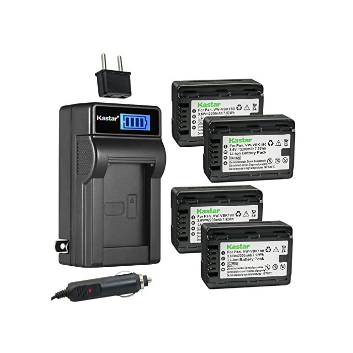 Kastar 4-Pack VW-VBK180 Battery and LCD AC Charger Compatible with Panasonic HDC-TM41, HDC-TM41H, HDC-TM41P, HDC-TM41PC, HDC-TM45, HDC-TM55, HDC-TM55K, HDC-TM55P, HDC-TM55PC, HDC-TM60, HDC-TM60P